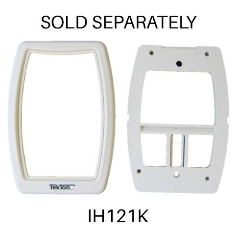 Mount the station using an IH121K Single-Gang Mounting Kit, or mount two stations together using an IH122K DualGang Mounting Kit. The station snaps into the kit's plastic bezel and then onto the kit's surface mounting plate, leaving no visible screw holes.